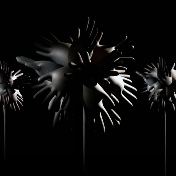 Ein Ensemble atmender Objekte aus Latexhandschuhen bildet eine kinetisch-pneumatische Installation, die im Gewölbe verteilt und begehbar aufgestellt ist. Durch dynamisch gesteuerte Luftzufuhr verändern sich die Objekte permanent – sie aufblasen, fallen zusammen, pulsieren – und erzeugen ein schweres, atmendes Rauschen. Die organischen Bewegungen verhandeln das fragile Gleichgewicht zwischen sozialer Ordnung, Nähe und individueller Entfaltung – ein Sinnbild für Kontrolle, Berührung und Instabilität.