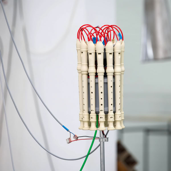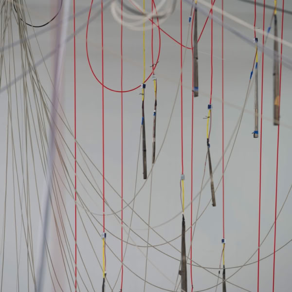 The acoustic sculpture was first activated by the artists in 2019 at the international festival FLURSTÜCKE 019 in Münster. As part of the exhibition at Kunsthalle Münster, the trio consisting of Euler, Mynther, and Sprenger continues this interdisciplinary project, which operates at the intersection of music, theater, and visual art. The Kunsthalle transforms into a stage, the exhibition into a synesthetic spectacle.